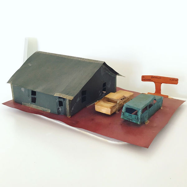 David Sulak (b. 1967) is a multi-disciplinary artist who lives and works in Louise, Texas. David’s work is a shrine to everyday items that have made an impression on him: an Oldsmobile seen around his Texas town, his grandmother’s couch, the kitchen of the house he and his mother share. Some of his drawings portray a single object, while other pieces contain a multitude of these nostalgic objects. His sculptural representations are composed of paper and tape and contain astonishing detail, reserved only for things of great love. David works from memory and the occasional magazine image; whether he is making a sculptural rendering of the state school he attended or drawing a dashboard of a car, his attention to minutiae demonstrates his appreciation for the subject and the memory it conjures. David has been a gallery artist at SAGE since 2018; SAGE represented David's work at New York City's Outsider Art Fair, the premiere art fair in the world for self-taught artists, in 2019 and 2020.
